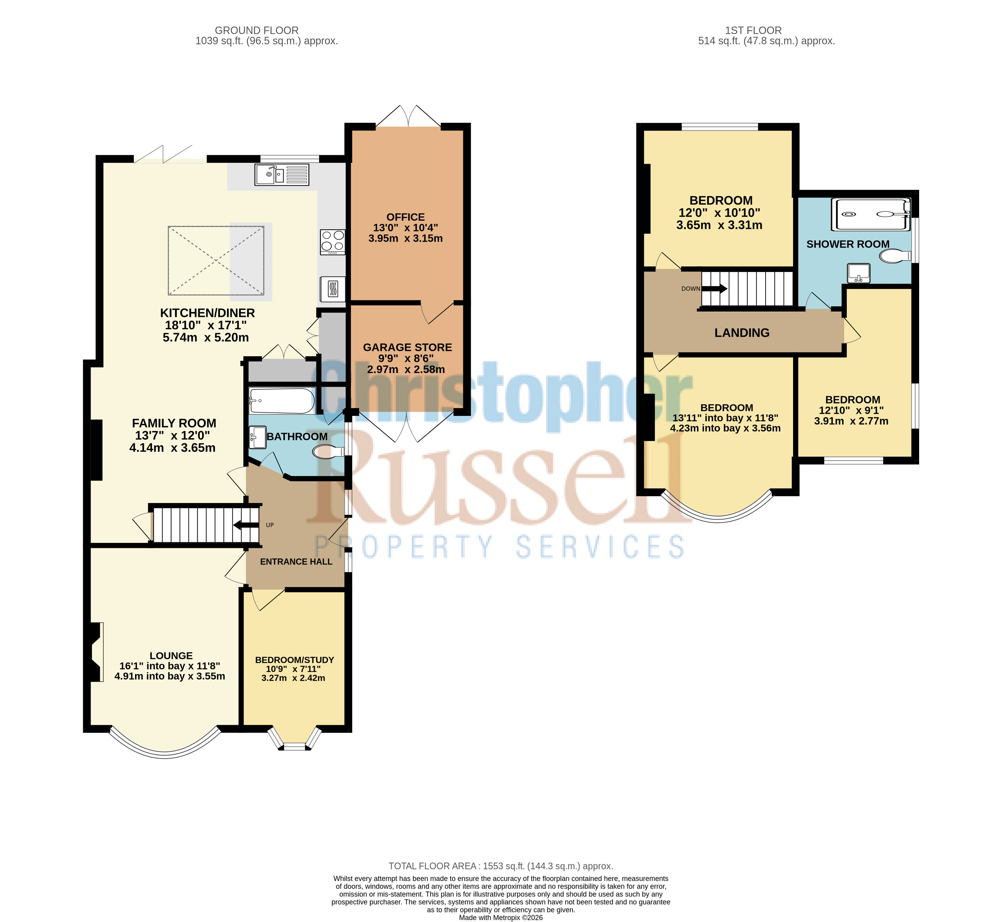 The accommodation comprises three double bedrooms and a feature family shower room on the first floor, while the ground floor offers an entrance hall, formal lounge, bedroom four/playroom/study, bathroom, dining room, and a full-width extended open-plan kitchen/diner and family room.
