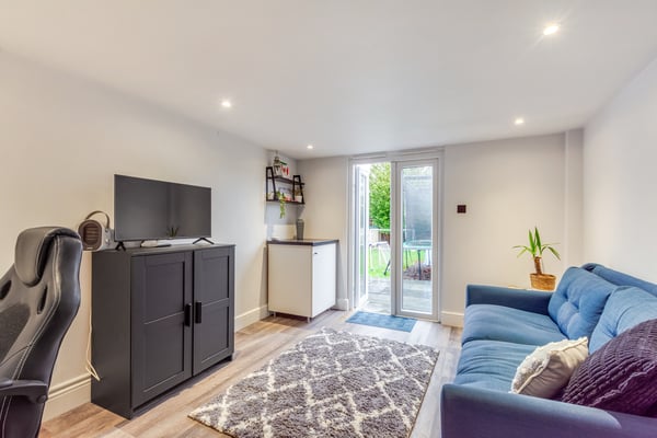 - Partially converted garage with front bin/bike store and fully renovated home office to the rear