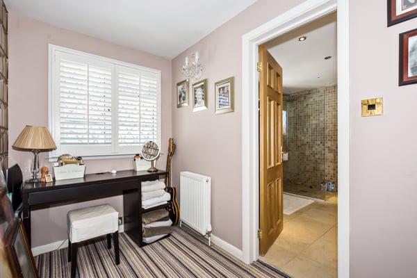 The first floor comprises three double bedrooms, two with a full range of fitted wardrobes and window shutters to all bedrooms. There is a larger than average landing that is ideal for a dressing area and a feature bathroom.